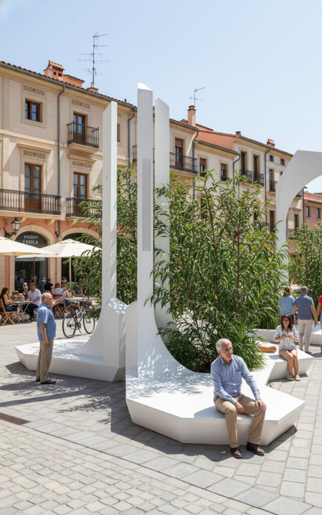 Un mobilier urbain qui rafraîchit, végétalise et éclaire — sans raccordement, sans dépense énergétique additionnelle, avec un design pensé pour le bien-être.